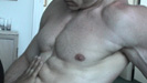 Another fantasy he had was to eat Matt’s ass! Manny does an awesome job of this licking Matt’s ass, balls and pulling his cock all the way back so he can suck it from behind; Matt was loving it! The evidence of that is when Matt was ready to cum, he got up on the coffee table and Manny got on his knees with his mouth open and tongue out! Matt blows a classic musclematt power cum shot right into his face and mouth soaking him in cum and filling his mouth...He got Blessed! Manny was like a leach stuck to Matt’s cock sucking out every drop like one of those cruise ship passengers of his at a free all you can eat buffet. He begged for more even called the next day for another shot; maybe next time. Been there done that, thanks Manny see ya!