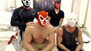 Both Matt and Brad face fuck Ron, then tag fuck him, cum in and all over his ass. I scoop their cum up and had feed Ron Matt and Brads cum. Then when Brad goes off camera to take a shower, make takes the camera and Ron takes my dick for a face slapping, breath control choking fuck.